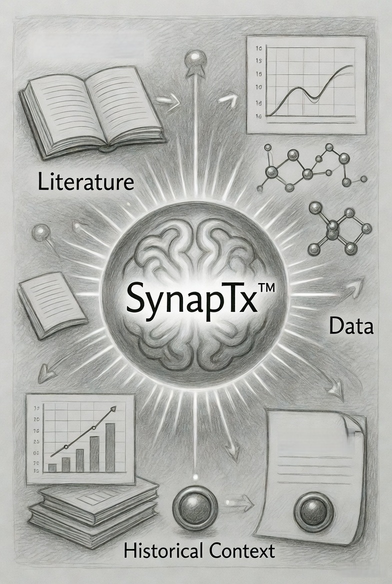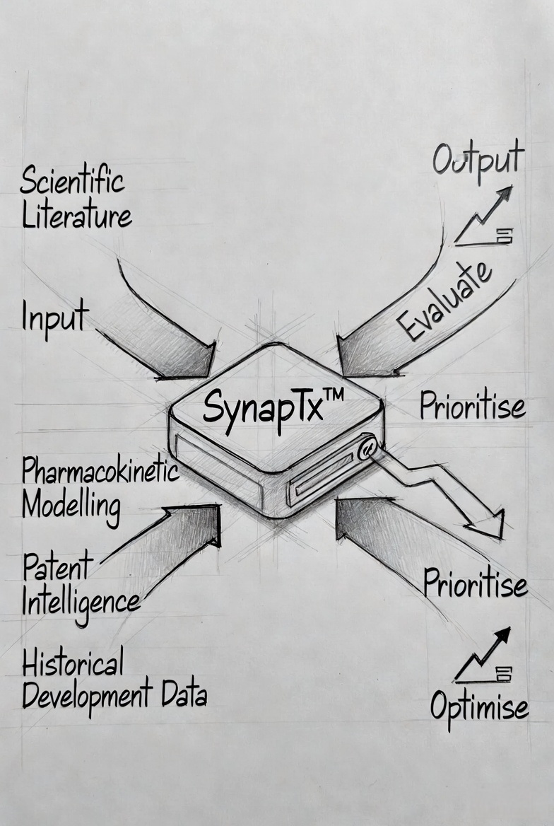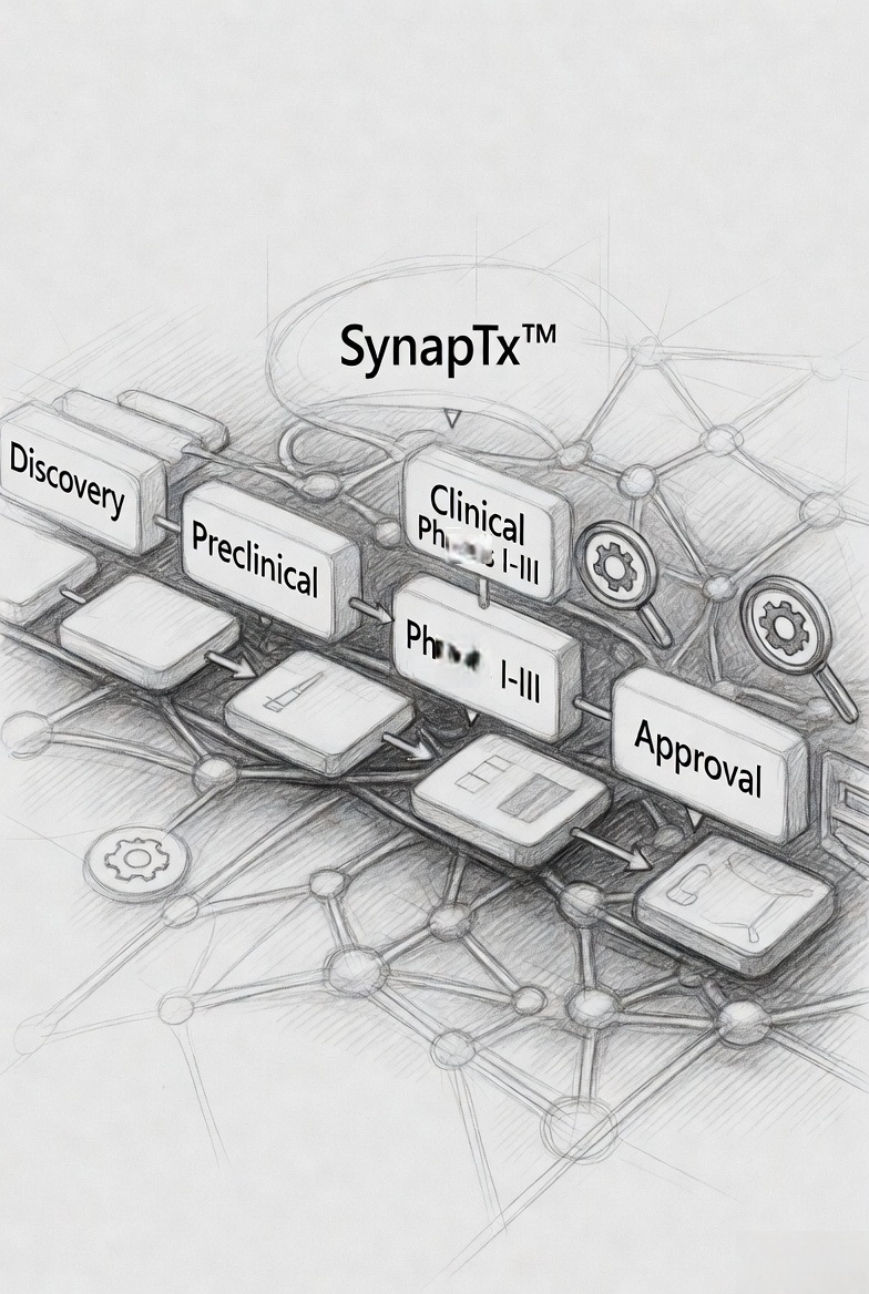 By integrating scientific evidence, predictive modelling, and development intelligence, SynapTx™ enables more informed, efficient, and strategically aligned decision-making across the development lifecycle.